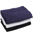 100% cotton. Luxurious thick pile terry towelling. Flat weave border (12cm). Excellent absorbency qualities. Hanging loop.