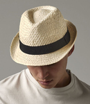 100% paper straw. Polyester sweatband. Hand made. Tear out label.