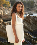 100% Organic cotton, 140gsm (4.1oz/yd²). Coloured with sustainably-derived natural dyes. Subtle variations in colour due to natural dyeing process. Large capacity. Fades beautifully over time. Can be carried by hand or over the shoulder. TearAway label for easy rebranding.