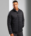 Recycled nylon outer. Recycled polyester lining and padding. Easy care fabric. Shower resistant. Lightweight. Full length zip. Two front zip pockets. Inner pocket. Packs away into stuff sack. Zip access for decoration.